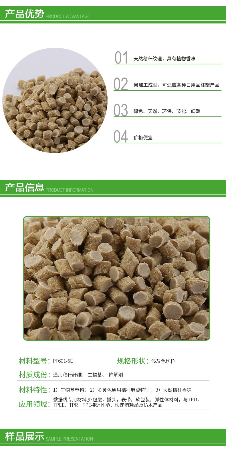 麥纖維復(fù)合材料PF601-6E的優(yōu)勢: